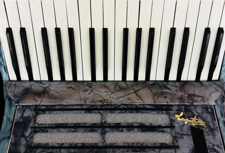 – Pianodragspel med pianoliknande tangenter för höger hand